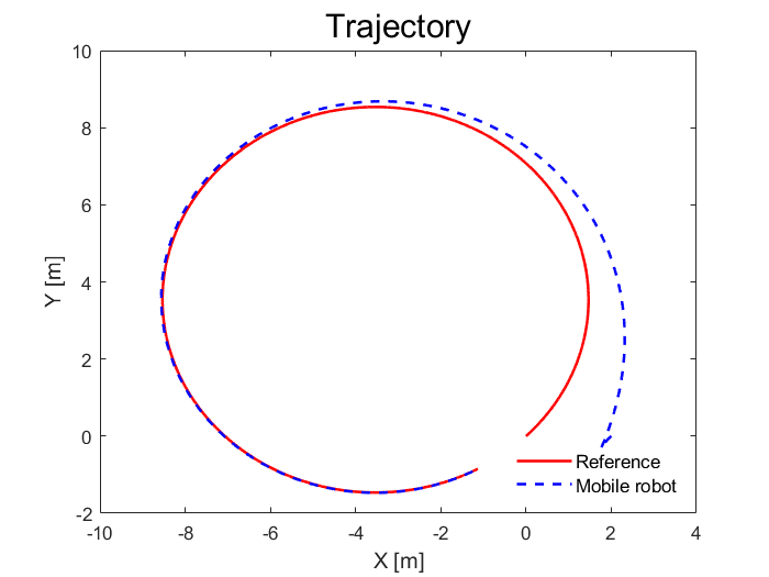 legend({'Reference','Mobile robot'}, 'Fontsize', 10, 'Box', 'off','Location', 'southeast');